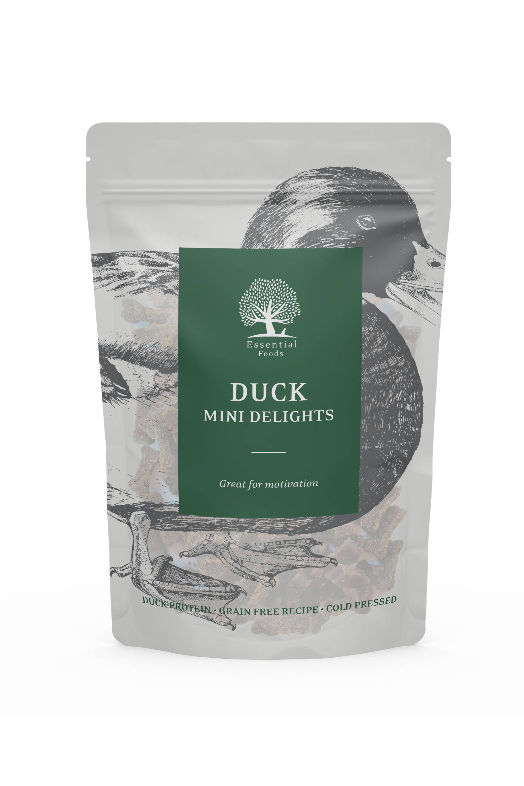 Ett spannmålsfritt recept med massor av anka. När man behöver godis till träning, motivation eller på promenaden blir dessa perfekta. Praktiska återförslutbara förpackningar. MINI DELIGHTS är ungefär 1 cm i storlek och semi moist, dvs mjuka. Priset? Vi vet! De borde kosta mycket mer men vi kunde inte låta bli. Tillagad i EU.